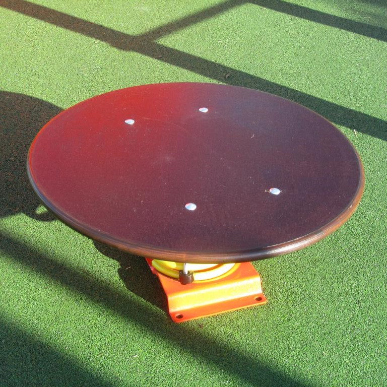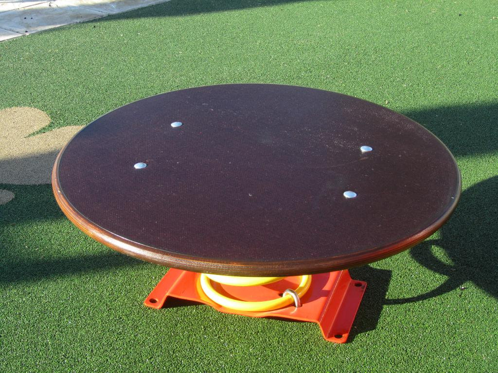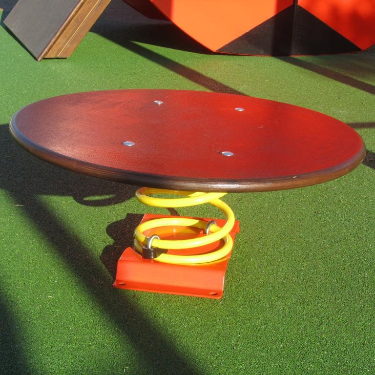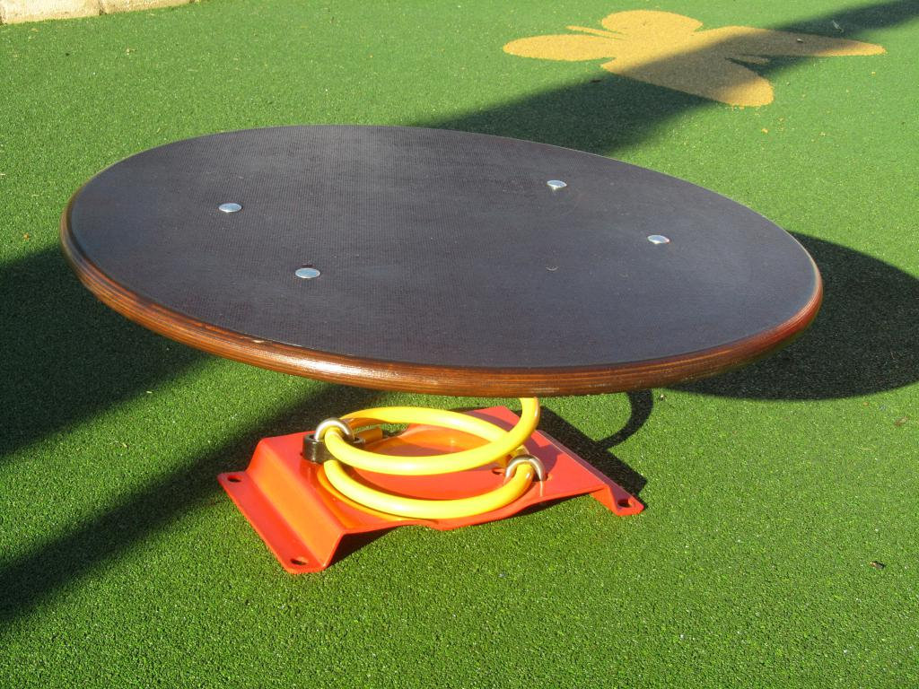 Estructura de muelle compuesta por una plataforma redonda que hace que el juego de salto sea divertido.