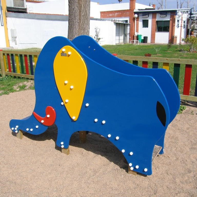 La imagen que representa el elefante como animal de la selva, junto con su colorido, hacen de este tobogán un elemento de juego atractivo para los niños, siendo ideal para guarderías y parques infantiles en zonas restringidas para menores.