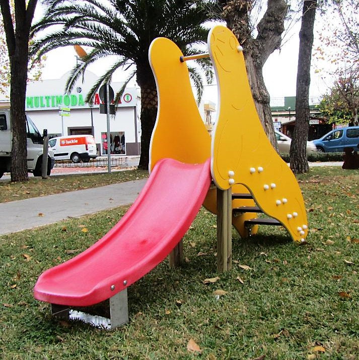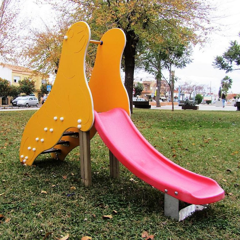 Tobogán diseñado para los más pequeños, para que ellos experimenten las primeras sensaciones de deslizamiento y aceleración. Este elemento favorece el ejercicio físico y la psicomotricidad.