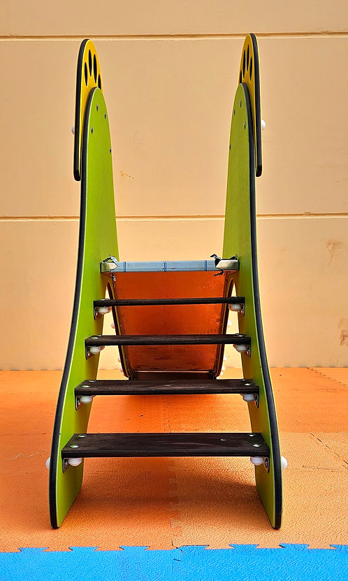 Recomendable para los más pequeños, con este tobogán los niños experimentan la sensación de deslizarse sin riesgo. Al tener que subir las escaleras para deslizarse favorecemos el ejercicio físico y la psicomotricidad.